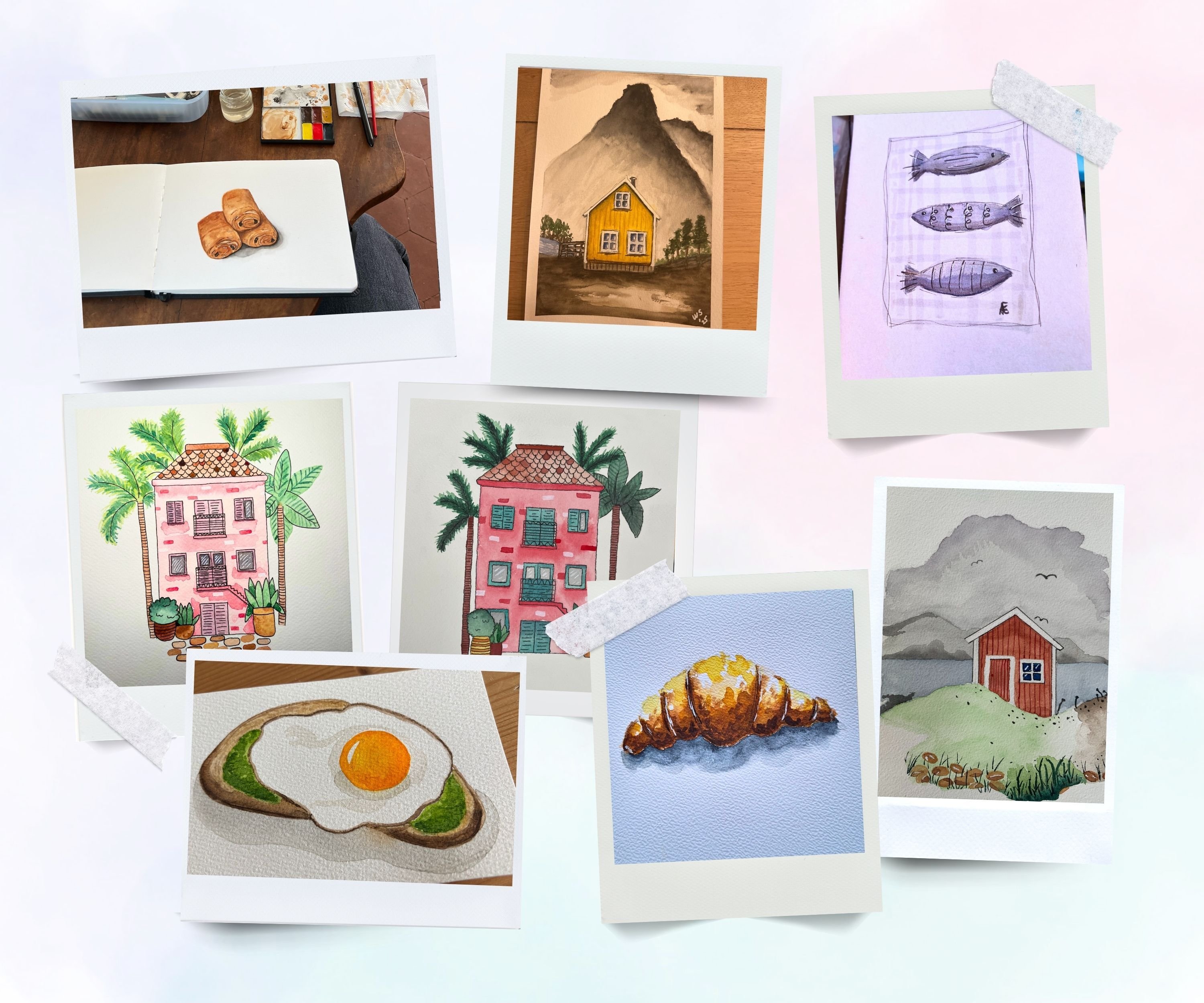 Ik schilder graag eten, huisjes, landschappen en natuur-onderwerpen, en verzoekjes zijn altijd welkom!