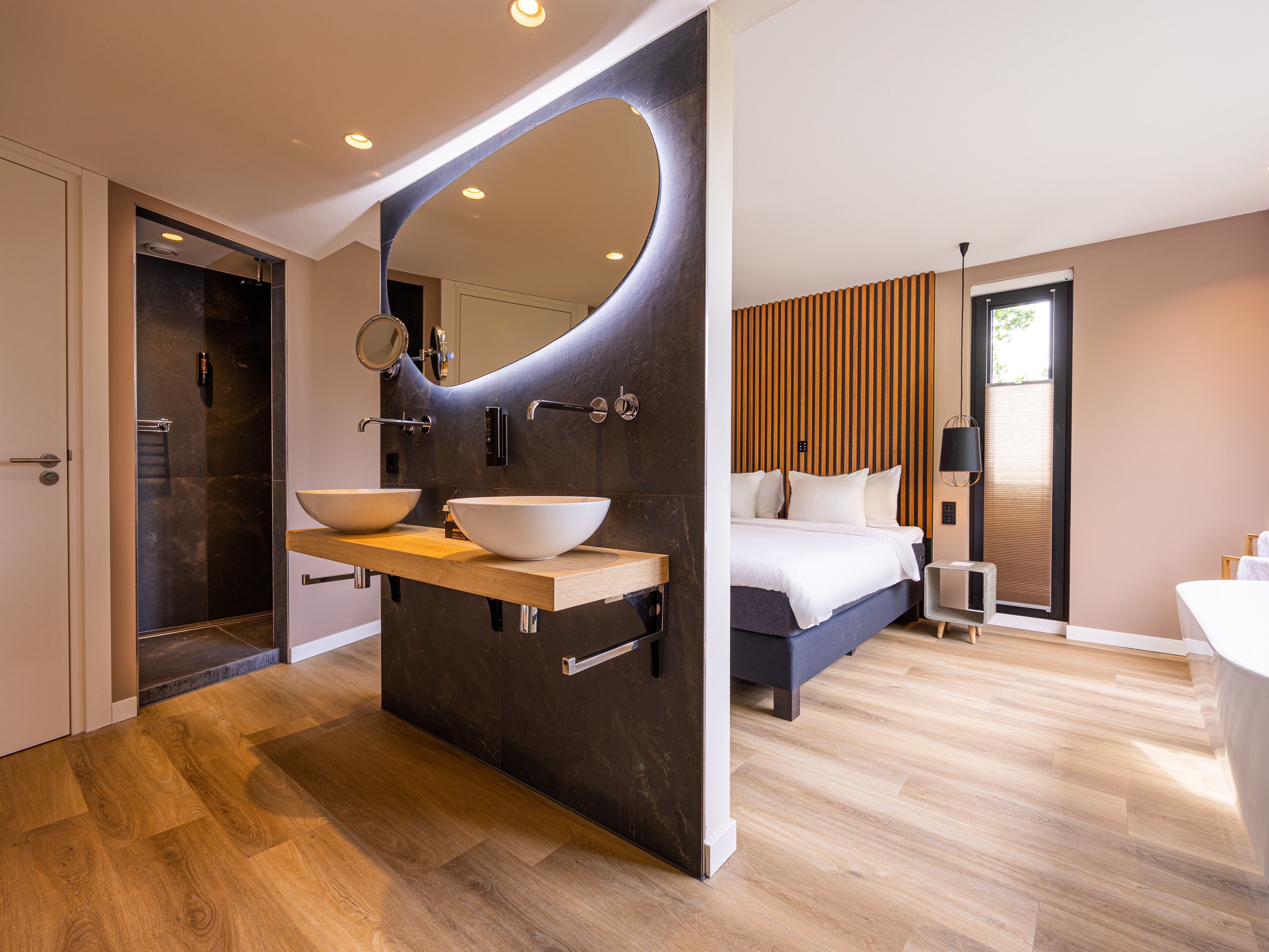 Een eigen kamer in een viersterren wellnesshotel, midden in het groen.